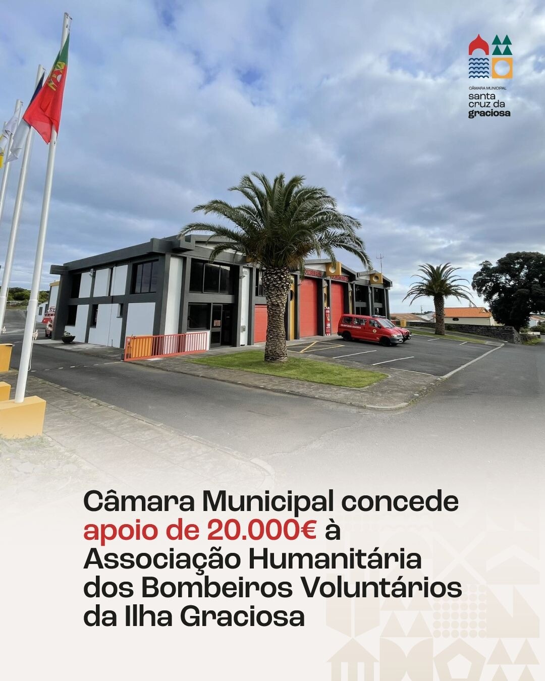 A Câmara Municipal de Santa Cruz da Graciosa concedeu um apoio financeiro à Associação Humanitária de Bombeiros Voluntários da Ilha Graciosa, no valor de 20.000 euros, reafirmando o compromisso deste Executivo com a segurança e proteção da população.