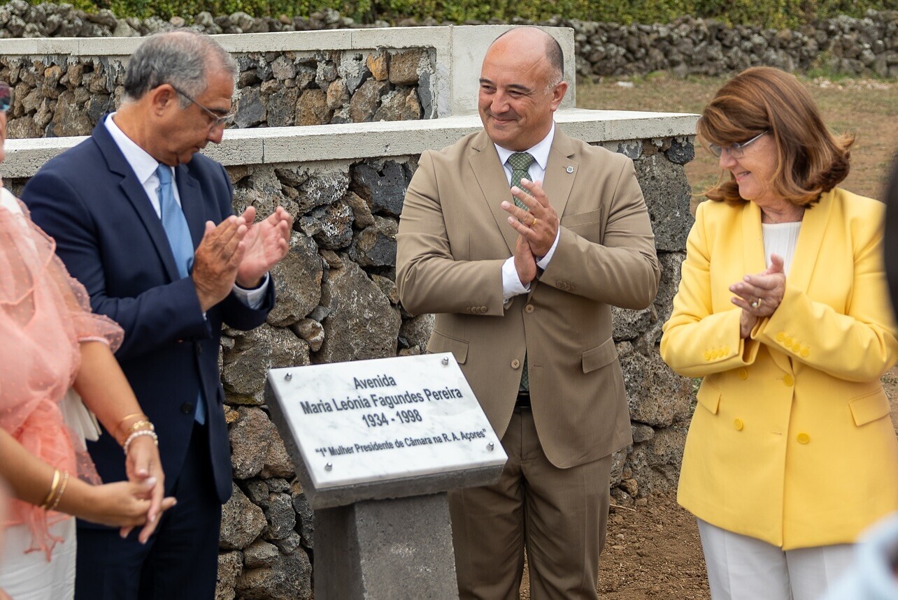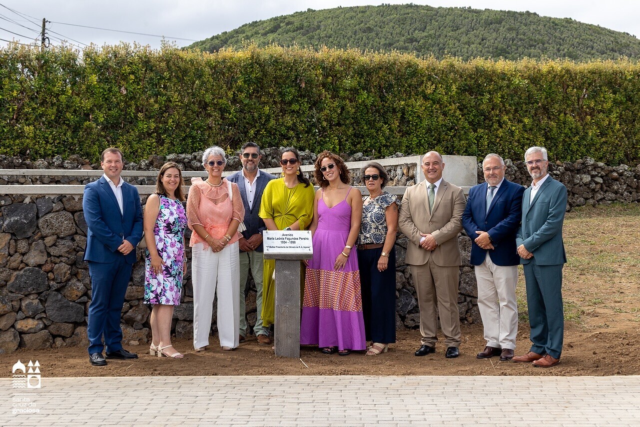 A Câmara Municipal de Santa Cruz da Graciosa realizou, esta manhã, a cerimónia oficial de descerramento da placa da nova Avenida Maria Leónia Fagundes Pereira, num momento carregado de simbolismo e reconhecimento pelo contributo ímpar da antiga presidente da autarquia e 1ª mulher eleita Presidente de Câmara na Região Autónoma dos Açores.