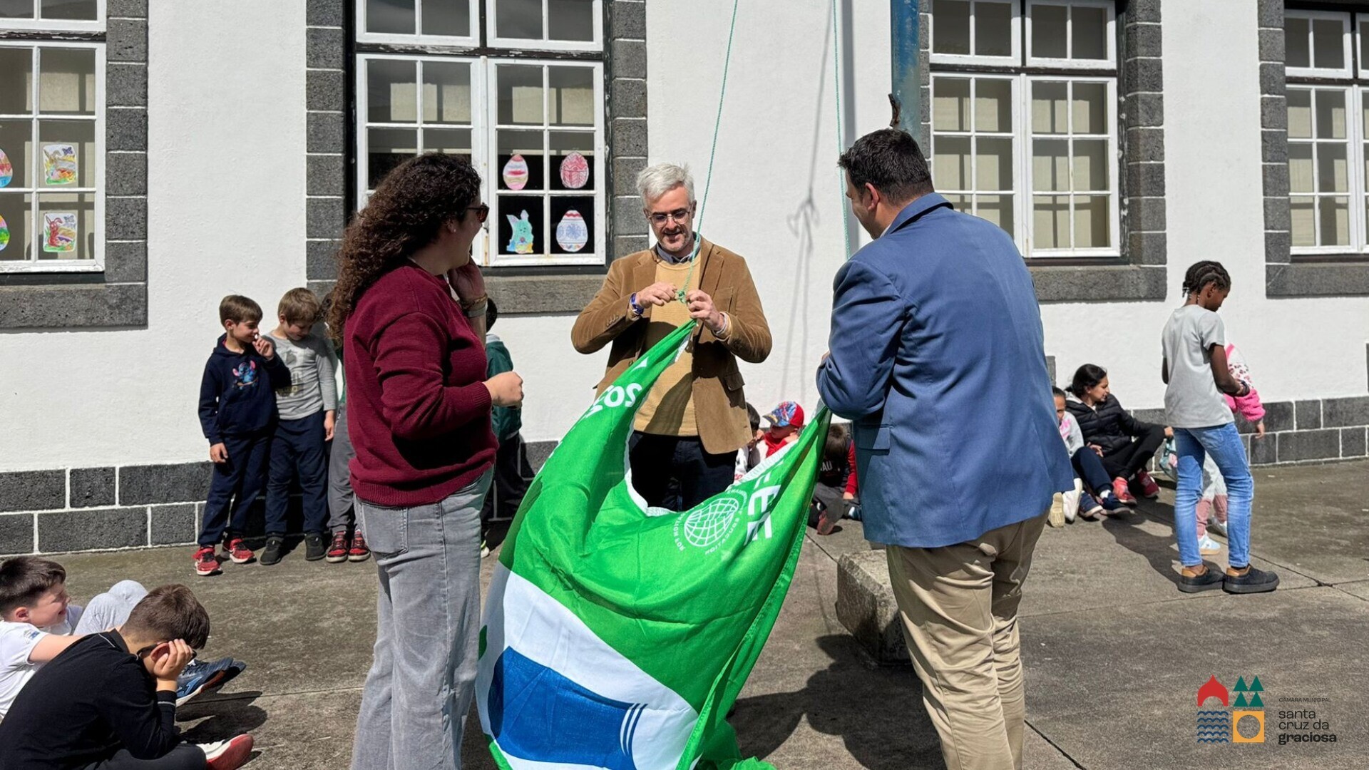 O Vice‑Presidente da Câmara Municipal de Santa Cruz da Graciosa, Bruno Silveira, marcou presença no hasteamento da Bandeira Eco‑Escola na EB1/JI de Luz, a convite da escola, associando‑se a um momento de celebração do trabalho desenvolvido em prol da sustentabilidade ambiental.