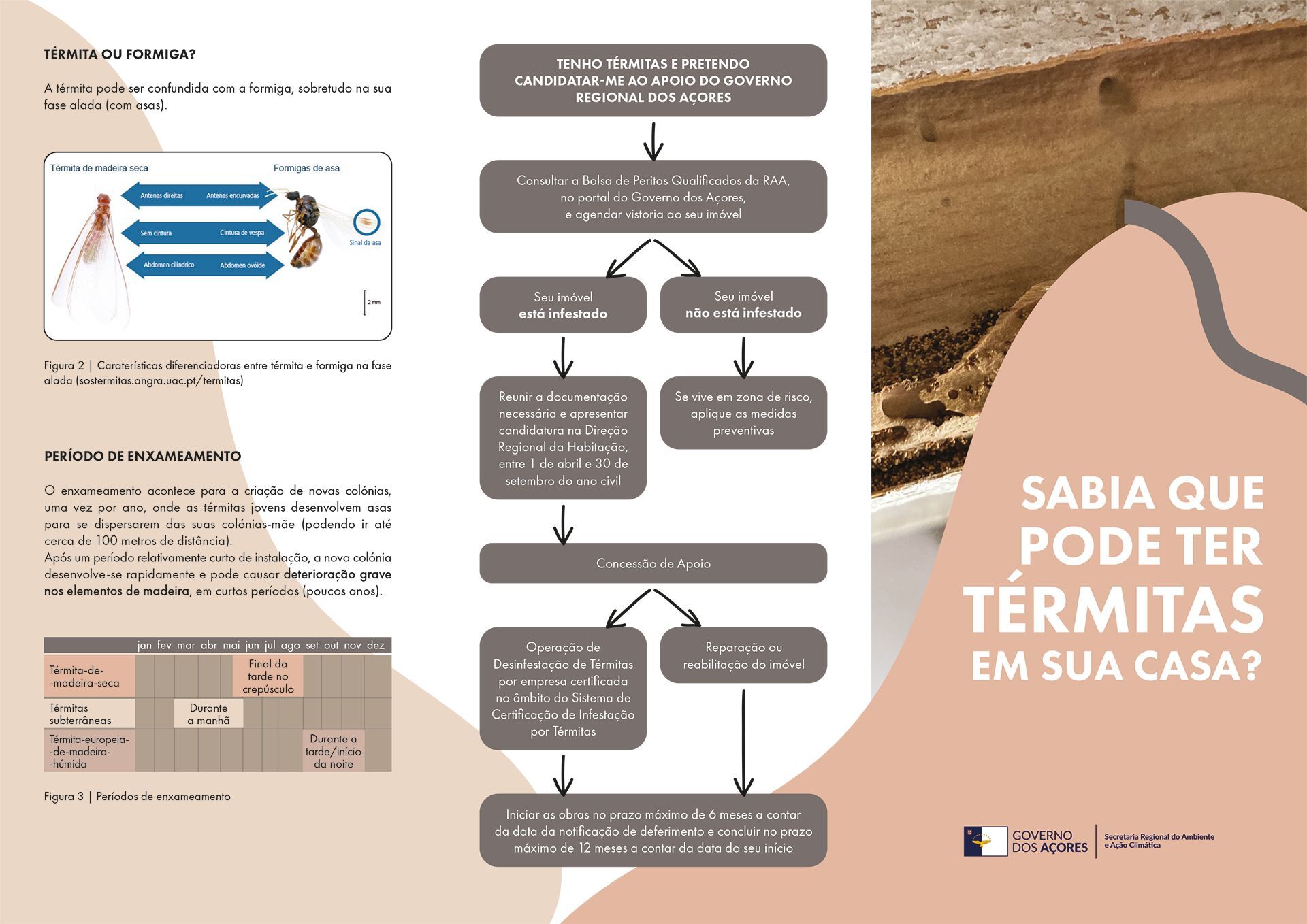 Para mais informações ou esclarecimentos, consulte a imagem seguinte. Em caso de suspeita de térmitas na sua casa, contacte o Serviço de Ambiente e Ação Climática da Graciosa.