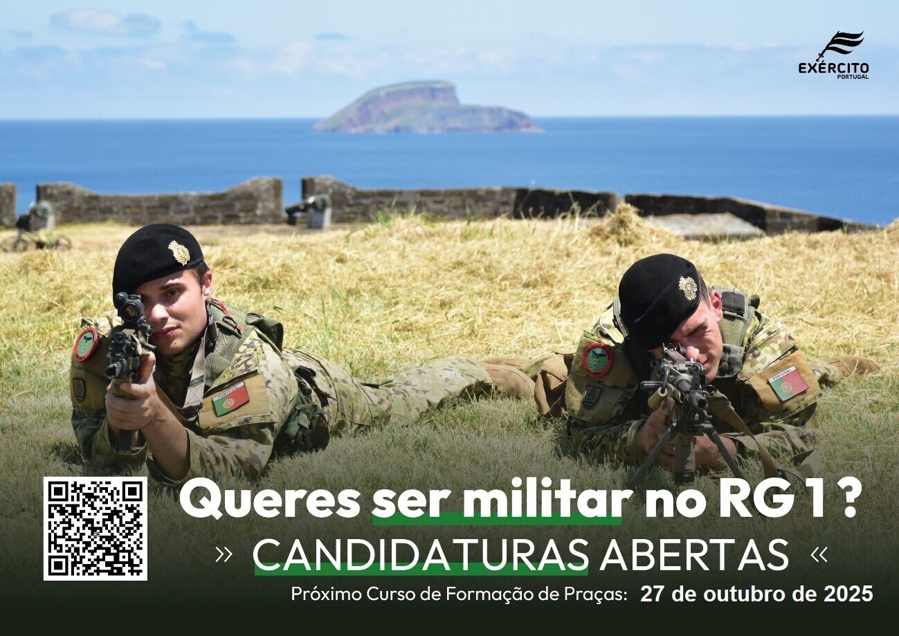 Inscrições abertas até 19 de setembro, para o 6.º Curso de Formação Geral Comum de Praças do Exército no Regimento de Guarnição N.º 1 (Angra do Heroísmo) ou no Regimento de Guarnição N.º 2 (Ponta Delgada).