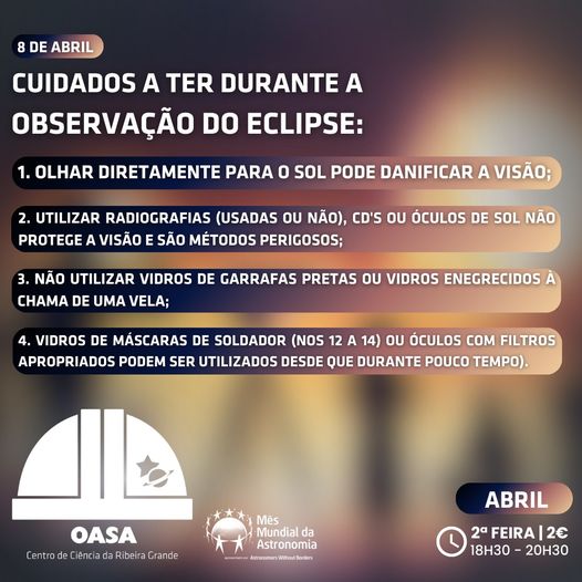 ℹ️ Importante referir que não devem olhar diretamente para o sol, tomando todas as precauções necessárias durante a observação deste fenómeno e para isso deixamos aqui alguns cuidados a ter.