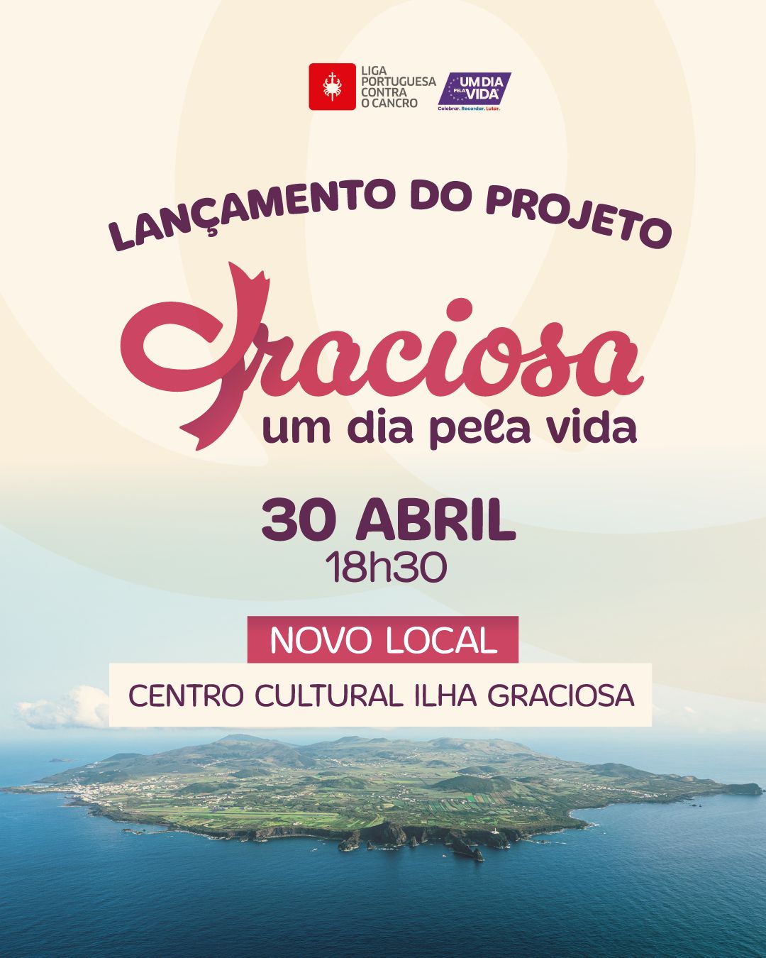 O projeto Um Dia Pela Vida, promovido pela Liga Portuguesa Contra o Cancro – Núcleo Regional dos Açores, será apresentado no dia 30 de abril, às 18h30, no Centro Cultural da Ilha Graciosa.