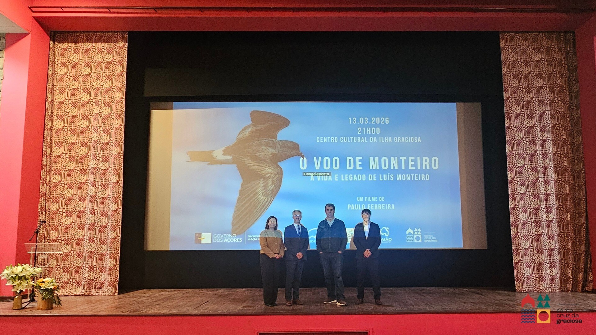 Foi apresentado na passada sexta-feira no Centro Cultural da Ilha Graciosa, o documentário “O Voo de Monteiro – A Vida e Legado de Luís Monteiro”, integrado na IV Edição do Festival das Reservas da Biosfera de Portugal – Graciosa, uma obra de grande sensibilidade realizada por Paulo Ferreira, que nos levou numa viagem profunda pela vida e contributo extraordinário deste investigador apaixonado pelas aves marinhas.