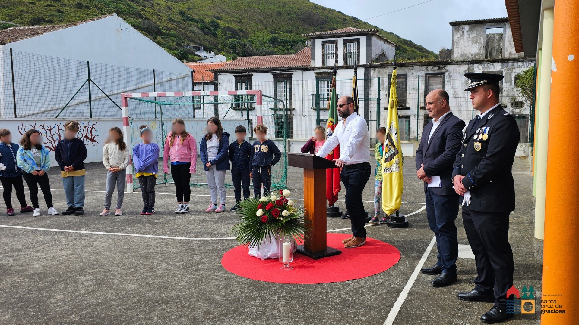 A cerimónia de entrega contou com a presença do Chefe e um Agente da Esquadra de Santa Cruz da Graciosa, Conselho Executivo da Escola Básica e Secundária da Graciosa e foi realizado no pátio da Escola Primária de Santa Cruz. "Este é um passo significativo para a nossa comunidade. Não só estamos a promover um ambiente mais seguro e tranquilo para todos os intervenientes do processo educativo, incluindo diretores, professores, auxiliares, os nossos jovens e famílias, como também estamos a adotar práticas mais sustentáveis e que beneficiam toda a ilha", disse o presidente da Câmara Municipal, António Reis.