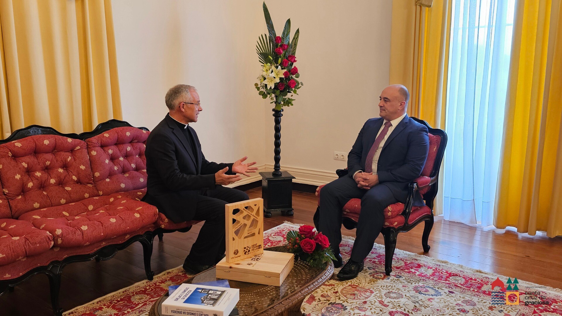 O encontro, que teve lugar esta sexta-feira, foi marcado por um ambiente de cordialidade e cooperação. Durante o mesmo, foram discutidos temas de interesse comum, incluindo o papel da Igreja na comunidade local, iniciativas conjuntas para o desenvolvimento social e cultural da nossa ilha, bem como a importância das parcerias para a manutenção do património religioso edificado.