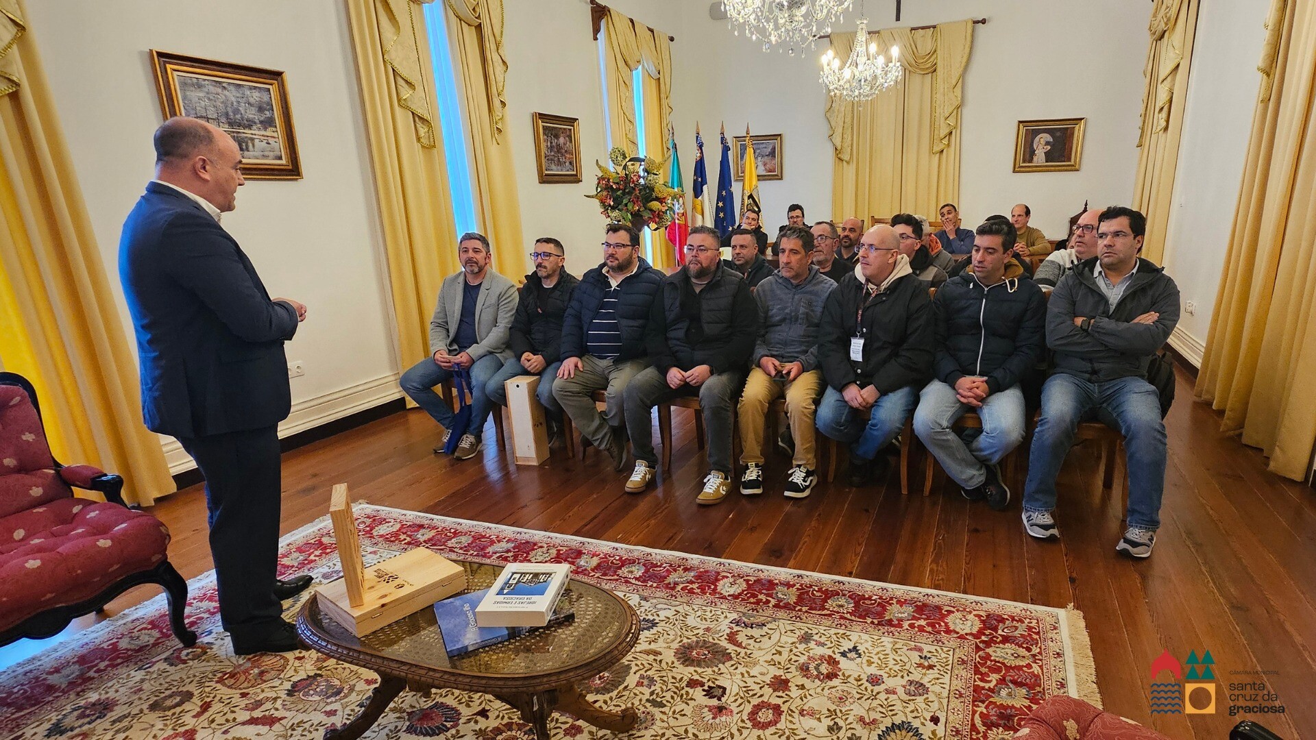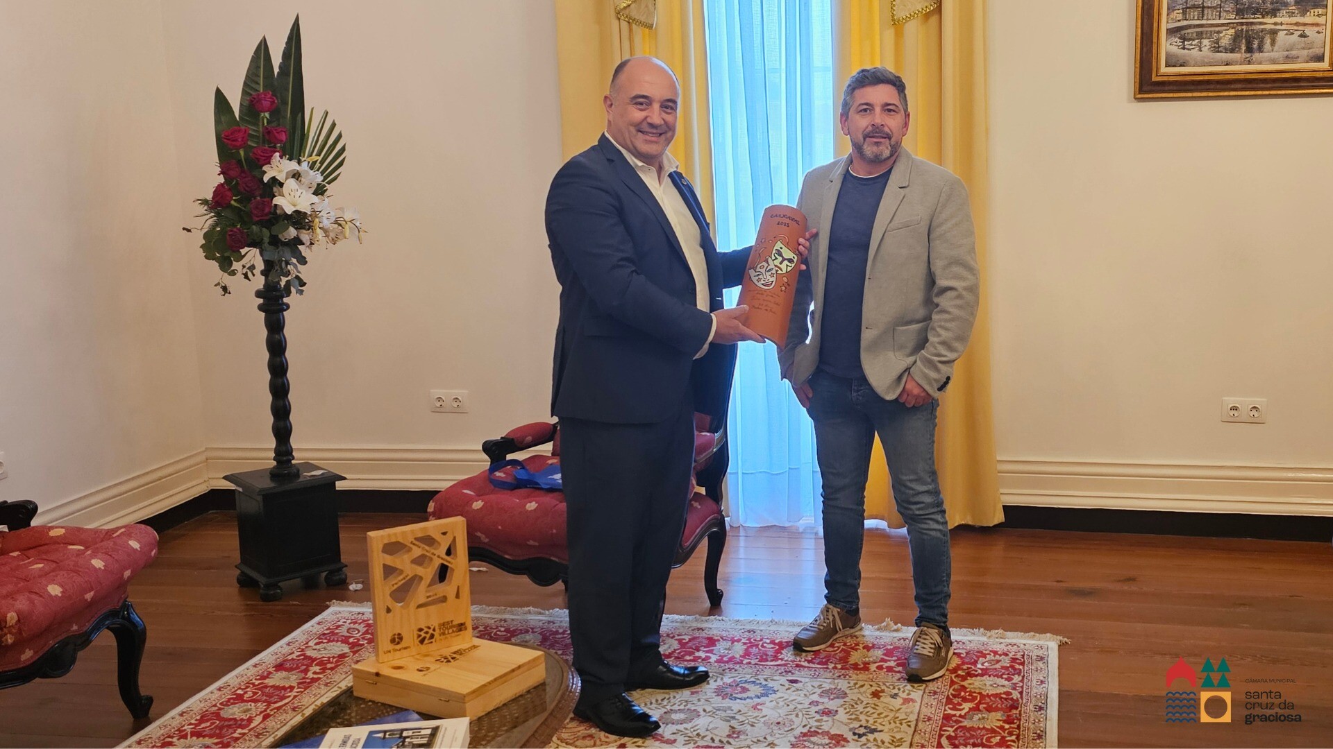 O Presidente da Câmara Municipal de Santa Cruz da Graciosa, recebeu o Grupo de Bailinho do Porto Judeu para apresentação de cumprimentos, este encontro simboliza uma importante troca cultural entre as ilhas, destacando o valor e a diversidade das tradições locais.