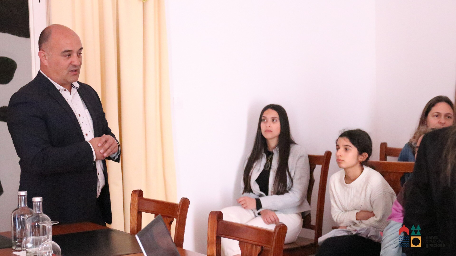 Os alunos foram recebidos pelo Senhor Presidente da Câmara, António Reis, responsável máximo pela Proteção Civil da Ilha e pela Técnica Superior Dr.ª Sofia Mendonça do Serviço Municipal de Proteção Civil desta Autarquia, na sala de sessões da Assembleia Municipal foi apresentado uma explicação do trabalho desenvolvido por este serviço.