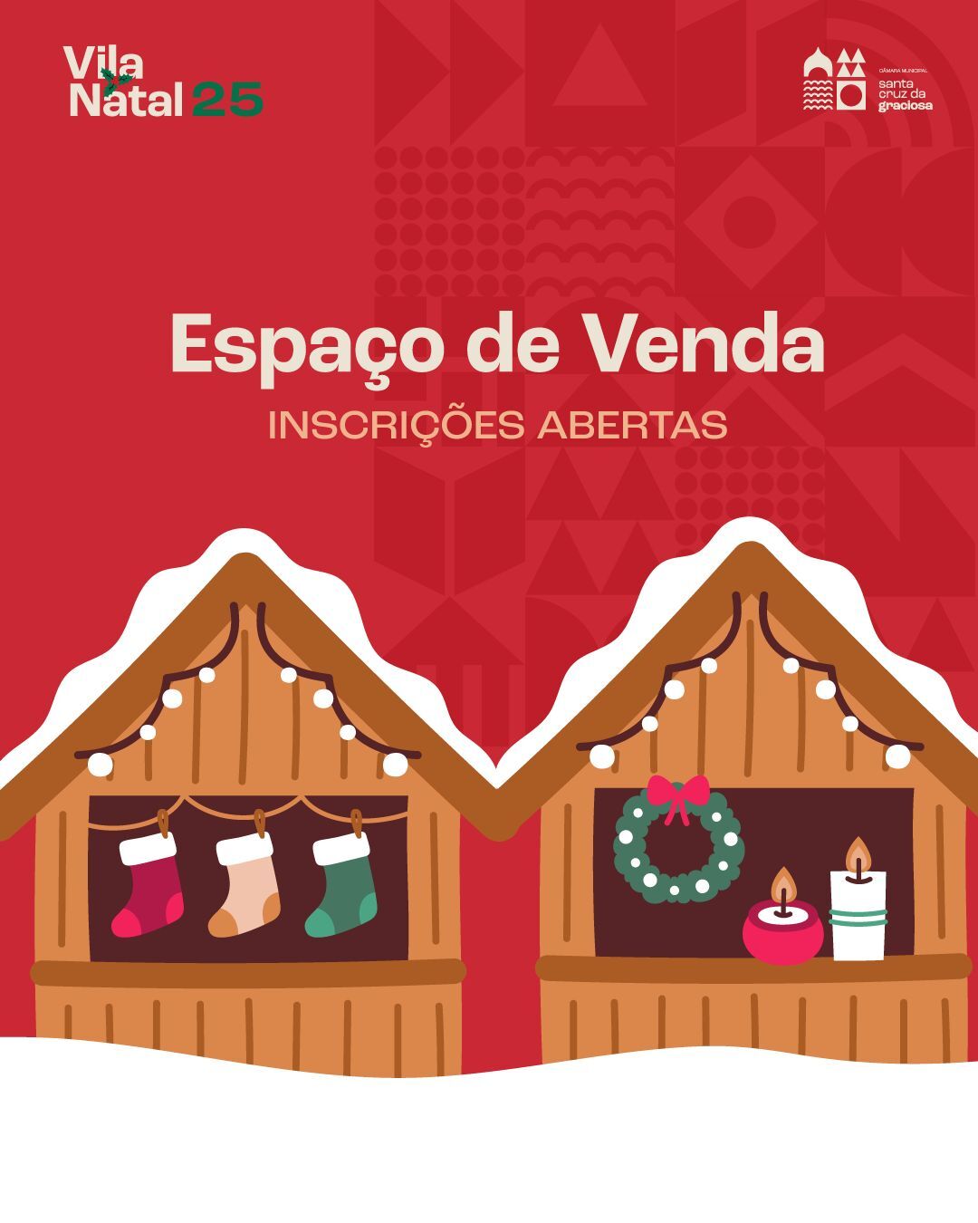 No âmbito da Vila Natal, a Câmara Municipal de Santa Cruz da Graciosa informa que se encontram abertas as inscrições para a exposição/venda de produtos e alimentação/bebidas.