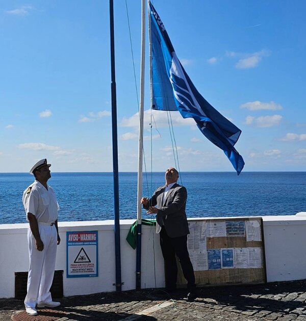 Foi hasteada hoje a Bandeira Azul nas zonas balneares do Carapacho, Praia, Calheta e Barro ...